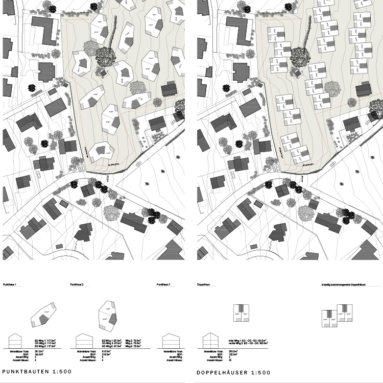 Das Modul «Projektarbeit I + II» bilden ein didaktisches Paar: In Semester I «vom Möbel zum Raum» gingen wir den Entwurf von seinem Ziel her an: dem atmosphärisch und funktional guten Raum. In Semester II gehen wir den umgekehrten Entwurfsweg «vom Kontext zum Raum»: wir untersuchen ein konkretes Grundstück in seinen topographischen, atmosphärischen und baurechtlichen Qualitäten und leiten daraus Gebäudevolumen und -orientierung ab. Wir prüfen Wohnhaustypologien auf ihre Anwendbarkeit am Ort. Ähnlich Semester I leiten wir aus den Erkenntnissen der vorhergehenden Übungen in der Schlussübung einen „passenden“ Grundriss ab. Auch dieses Mal wird der entwickelte Grundriss keine ganzheitlicher Entwurf sein. Baukosten, Tragwerk und Konstruktion bleiben unberücksichtigt. Die Betrachtung der Entwurfsaspekte Kontext, Atmosphäre, Baureglement und Typologie schärfen das Bewusstsein für die Bedeutung der jeweiligen Teilbereiche für die Entwurfsarbeit.