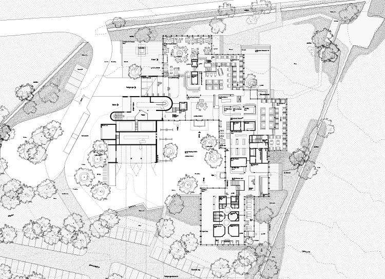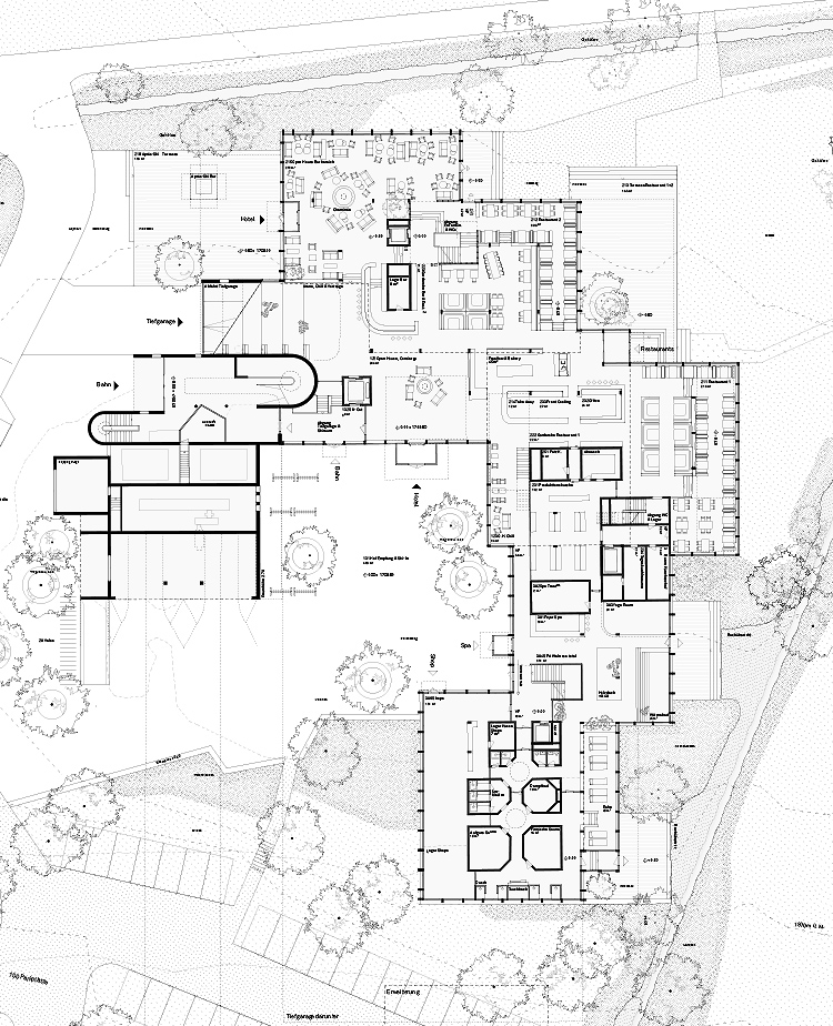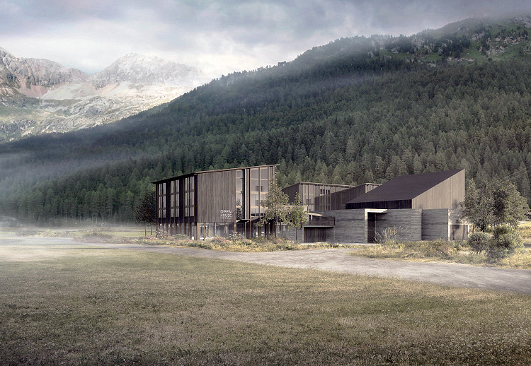 Das «Open House Furtschellas» erweitert die bestehende Talstation zum zwanglosen Ensemble. Wie ein Weiler aus grossen Hütten gruppieren sich die Baukörper um einen Empfangshof. Restaurants und Bar sind als «Open Housse» konzipiert: Räume fliessen, laden zum Sein und Verweilen ein - wir sind nicht Gast, wir fühlen uns unter Freunden. Das Erscheinungsbild erinnert bewusst an land- und forstwirtschaftliche Bauten. Das Open House möchte kein schmuckes Engadiner Dorf sein. Es ist die Hütte am Waldrand. Das Waldhaus, das getarnt vom Waldrand aus die Ebene beobachtet.