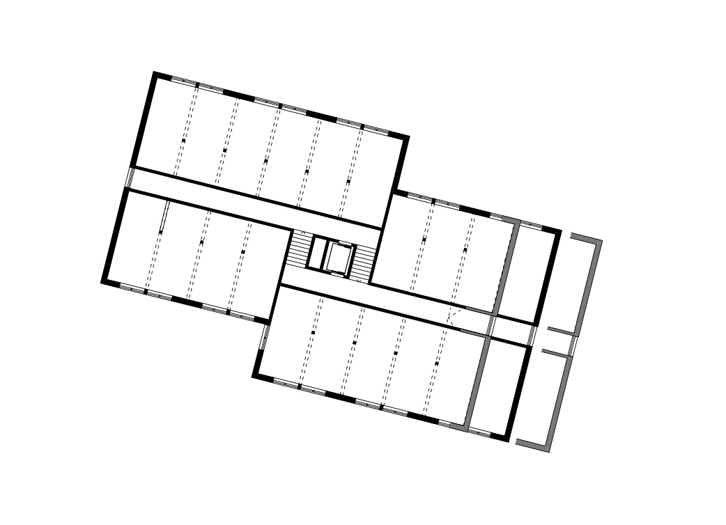 Im zweiten Haus befinden sich Wohnnutzungen in den Obergeschossen - sie helfen, das Projekt querzufinanzieren. Um auch in späten Planungsphasen noch spontan den Wohnungs- und Zimmermix an sich ändernde Nachfragen anpassen zu können, sind beide Hausgrundrisse modular aufgebaut.