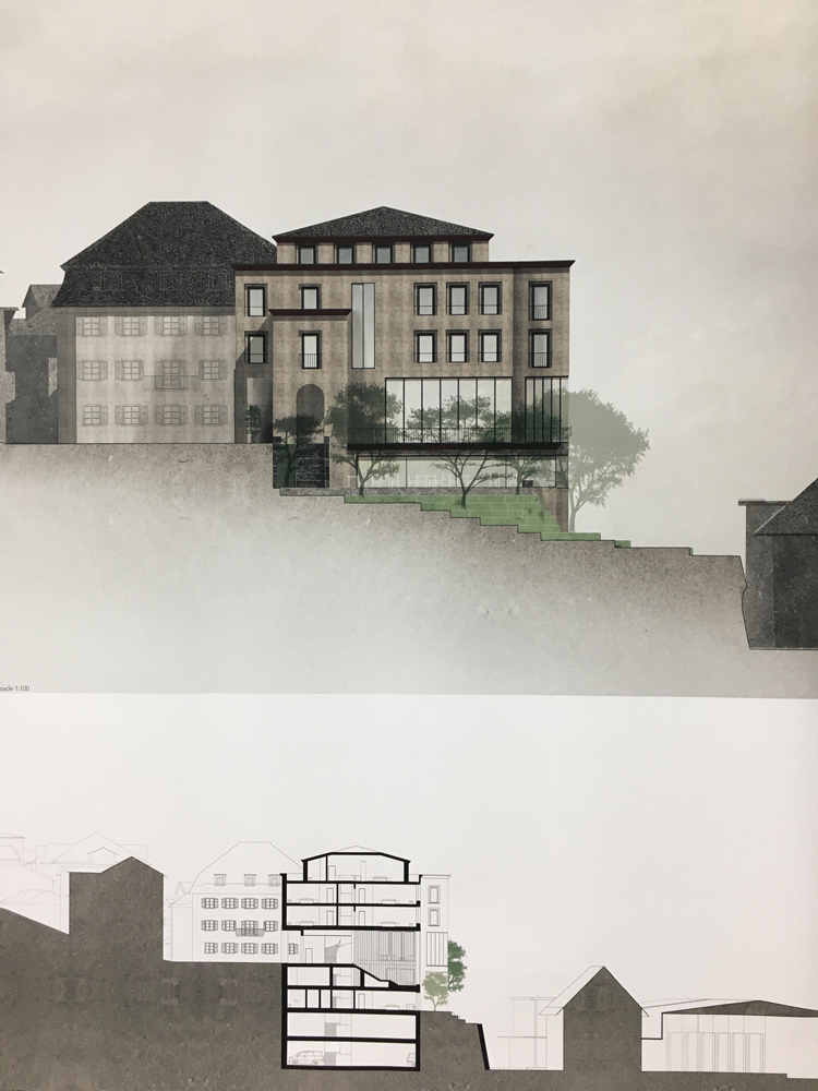 Zu Beginn galt es eine Zielgruppe zu definieren, welche für Übernachtungen an solcher Lage in Disentis in Frage kommt. Zudem war ein Weg vom Bahnhof hoch zum Kloster sowie eine Platzgestaltung integraler Bestandteil der Aufgabe. Der Gebäudekomplex soll Einheimischen und Gästen gleichermassen dienen. Über das Semester hinweg setzten sich die Studierenden mit der Typologie des Berghotels auseinander und übten sich in der Entwicklung atmosphärischer Räume sowie repräsentativer Fassaden.