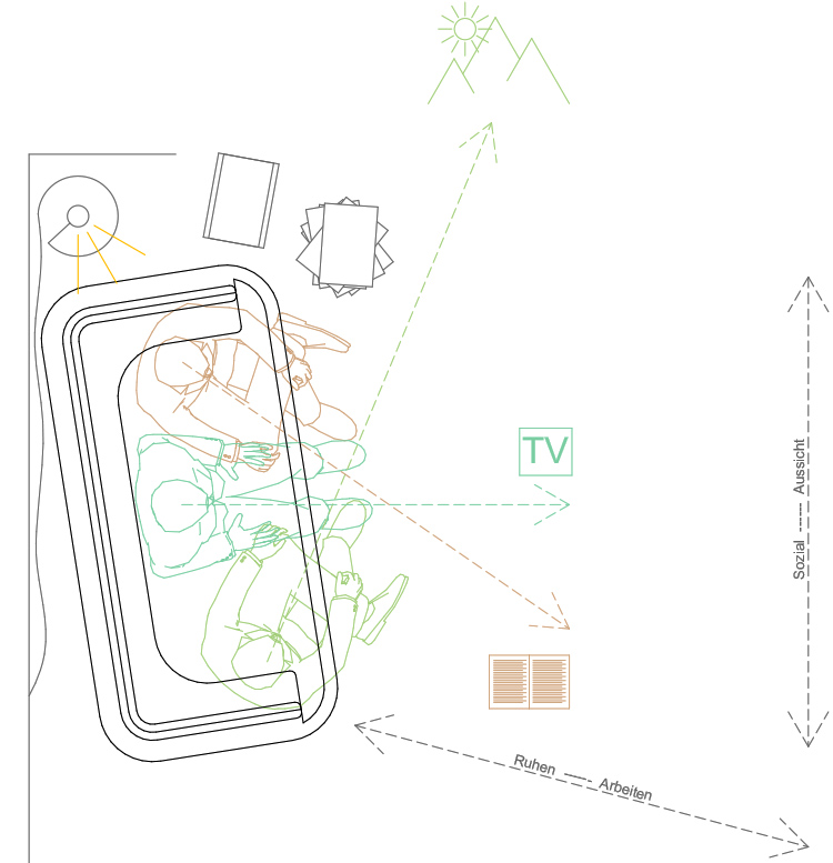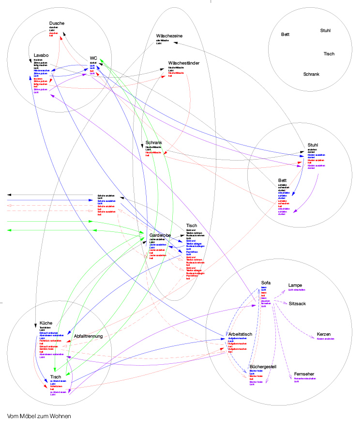 Im architektonischen Entwurf beginnen wir häufig beim Städtebau , der ortsbaulichen Situation. Sind die äusseren Linien des Gebäudes einmal definiert, beginnt das „Abfüllen des Grundrisses“ mit Wohnungen. Wenn der Städtebau stimmt, die Treppenhäuser und Wohnungen funktionieren, wir überall Türen und Fenster gesetzt haben und beginnen, den Grundriss zu möblieren, merken wir: im grossen Schlafzimmer finden wir einfach keine freie Wand für den Kleiderschrank, im Kinderzimmer haben keine zwei Kinderbetten Platz und im Wohnzimmer will sich einfach keine gute, gemütliche Position für Sofa und Fernsehgerät finden. Der Kurs «Vom Möbel zum Raum» möchte daher einmal den umgekehrten Entwurfsweg gehen. Ausgangspunkt soll dabei das eigentliche Ziel einer jeden guten Wohnung sein: das Wohlbefinden und der persönliche Handlungsspielraum eines Menschen. In einer ersten Übung werden wir unsere persönlichen Erfahrungen mit Wohnmöbeln analysieren und daraus allgemeine Anforderungen an Möbel und Raum ableiten. In einer zweiten Übung wird unser Wohnen, seine Abläufe und Handlungen, in einem Wohndiagramm als Ganzes analysiert und optimiert. In der letzten, dritten Übung sollen die Erkenntnisse aus den vorhergehenden Übungen in einem "idealen" Wohngrundriss zur Anwendung gebracht werden.